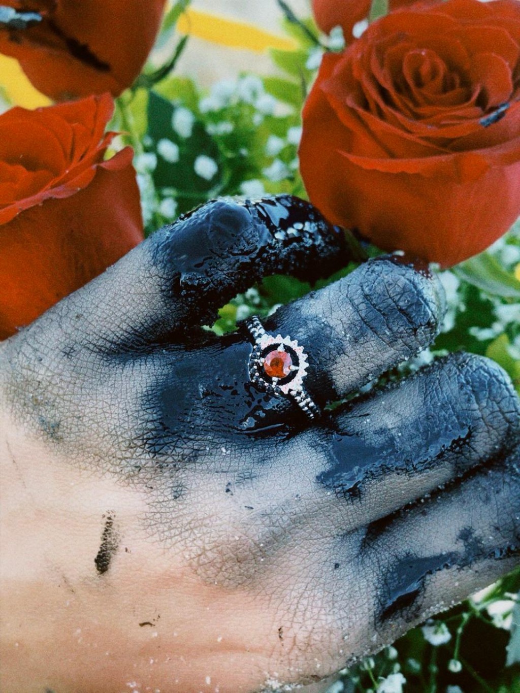 ele desenhou uma runa gigante na areia da praia e me pediu em casamento com um anel de rubi.